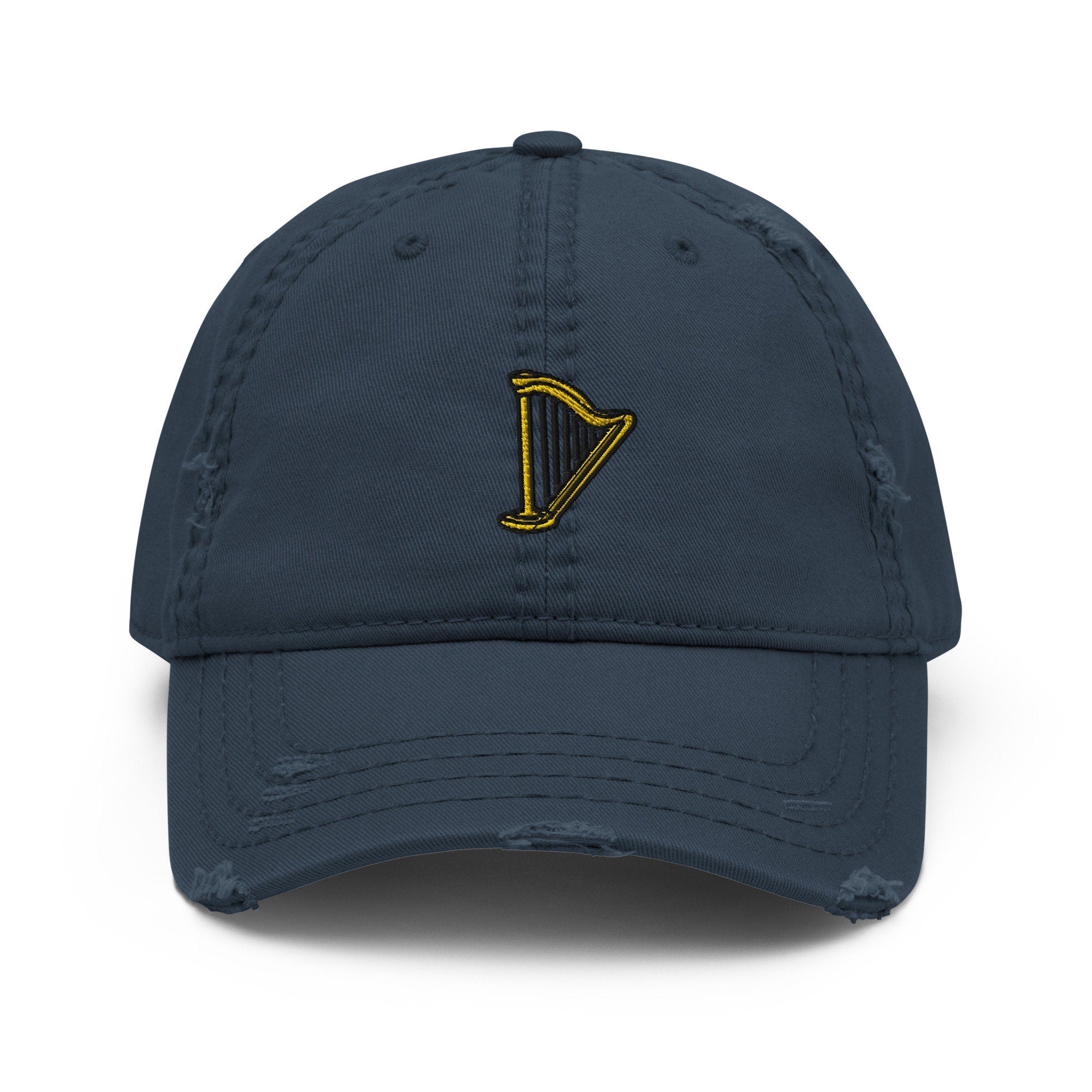Harp Embroidered Distressed Embroidered Dad Hat, Frayed Cap Gift